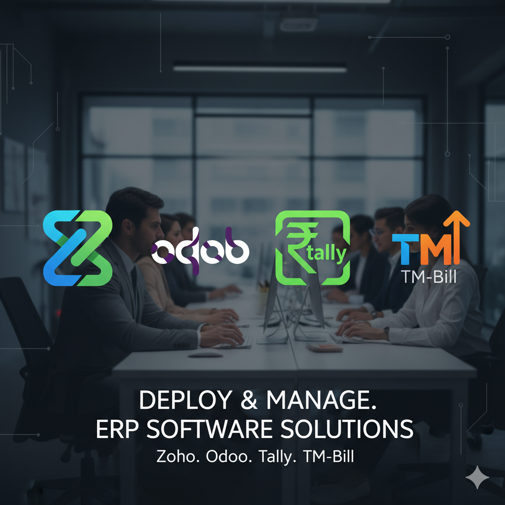 We specialize in deploying and managing leading ERP software solutions — Zoho, Odoo, Tally, and TM-Bill — to help businesses streamline operations, enhance productivity, and achieve real-time insights.