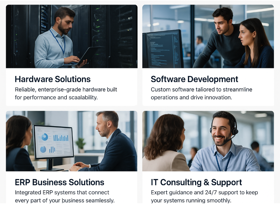 We integrate advanced hardware, powerful software, and tailored services to boost efficiency. Our certified experts ensure reliable, innovative, and scalable technology partnerships. Experience performance, trust, and pure synergy in every solution we provide.